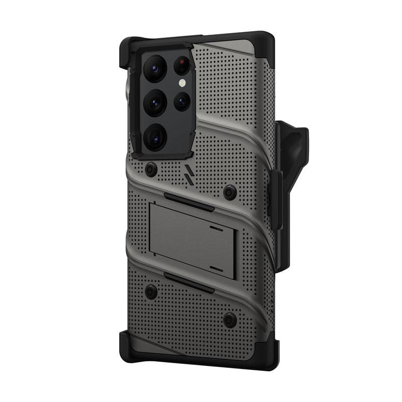 ZIZO BOLT Series - Pancerne etui Samsung Galaxy S23 Ultra ze szkłem 9H na ekran + uchwyt z podstawką (szary)