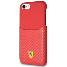 Ferrari Carbon Hard Case - Etui iPhone 8 / 7 z kieszenią na kartę (czerwony)