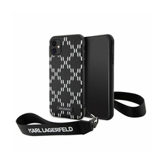 Karl Lagerfeld Monogram Losange Saffiano - Etui ze smyczką iPhone 11 (Czarny)