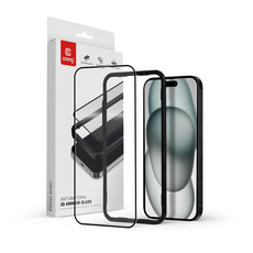 Crong Anti-Bacterial 3D Armour Glass - Szkło hartowane 9H Full Glue do iPhone 16 / iPhone 15 + ramka instalacyjna