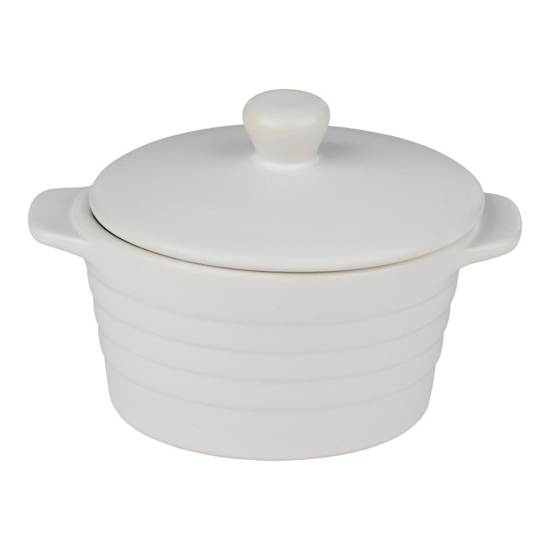 Alpina - Ceramic ovenproof dish with lid, round, 13x10 cm, 210 ml (white)