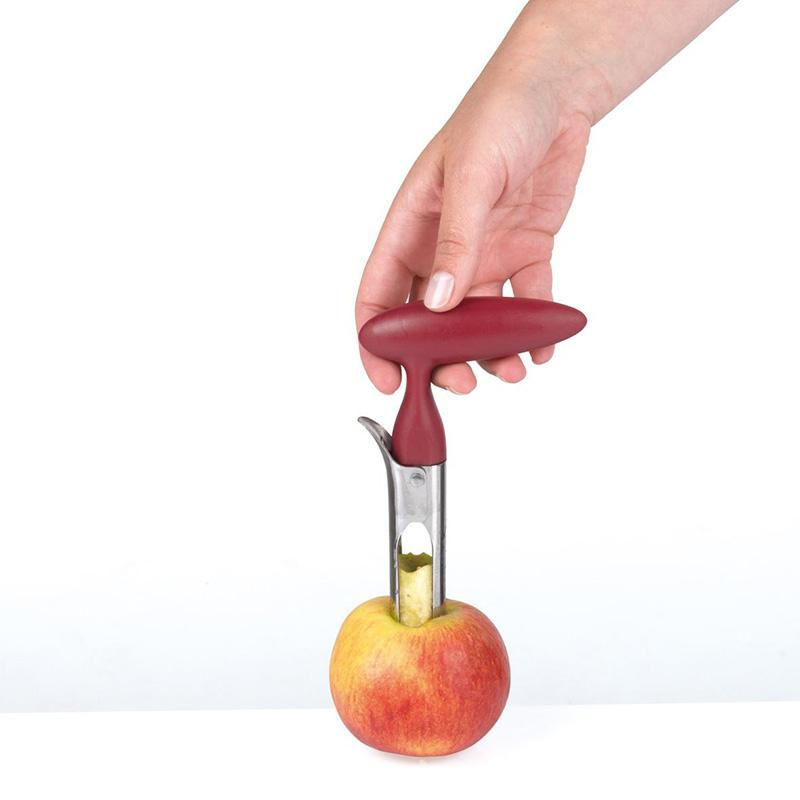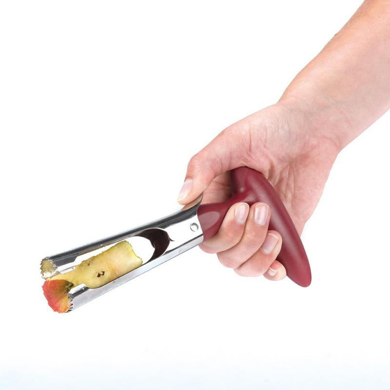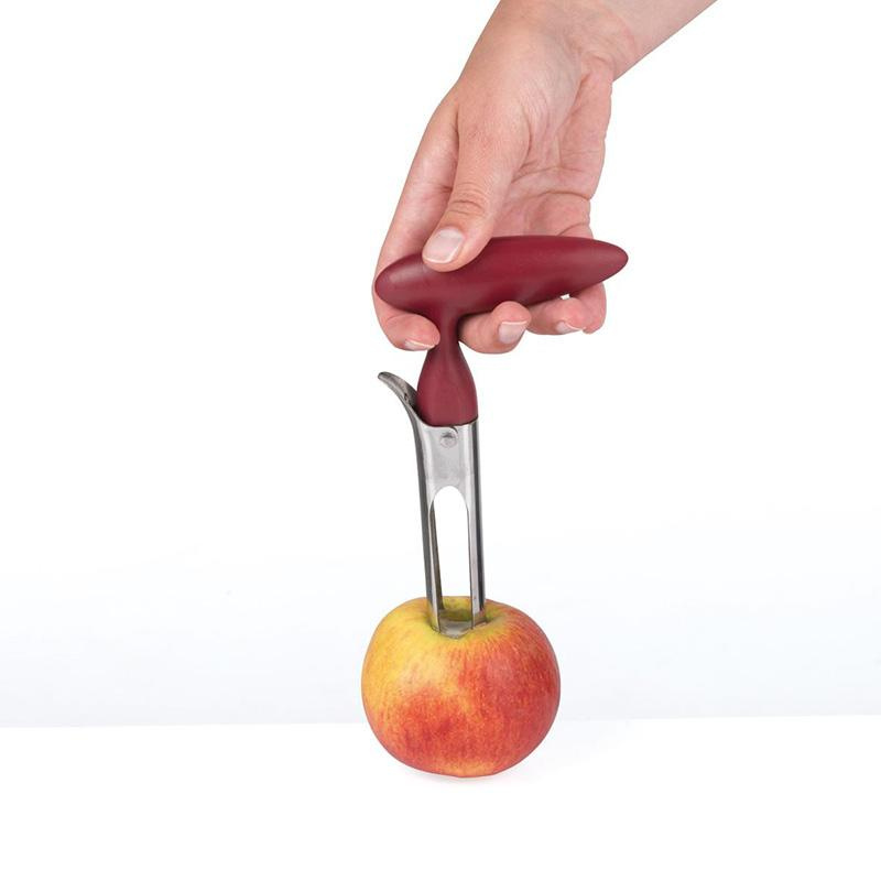 Ostre ząbki ze stali nierdzewnej i wygodny uchwyt sprawiają, że w szybki sposób można pozbyć się gniazda i łusek ze środka owoca.