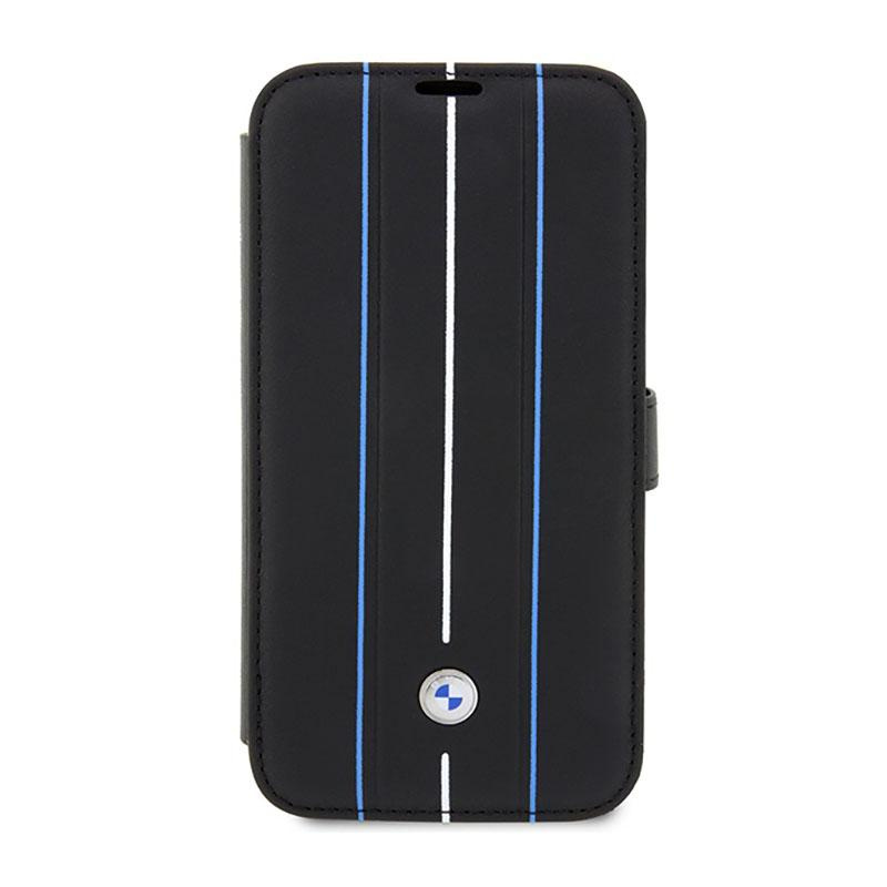 BMW Booktype Leather Stamp Blue Lines - Case for iPhone 14 Pro (Black)