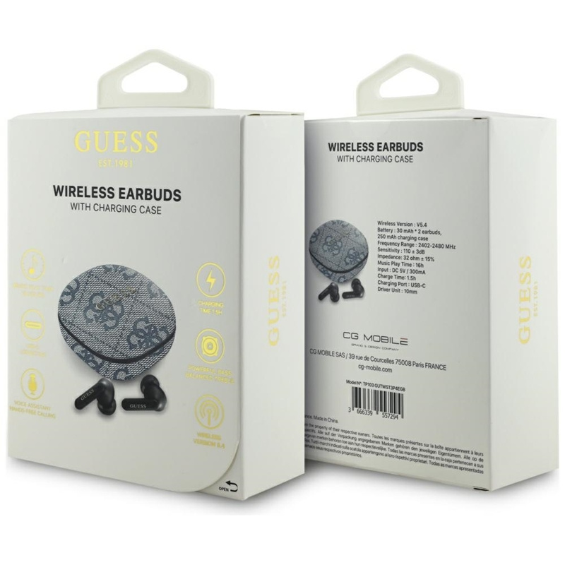 The Guess 4G Classic Metal Logo is a wireless in-ear headphone that combines modern technology with luxurious design. They are distinguished by an elegant case covered with ecological leather with a characteristic embossed 4G pattern and a metal Guess logo, which gives them a prestigious character.