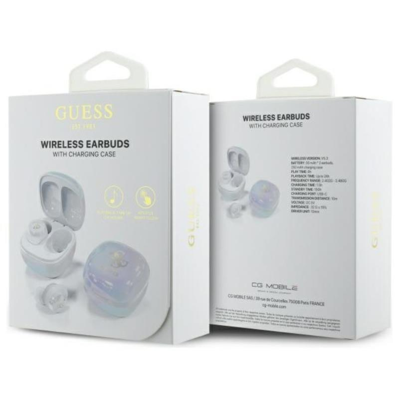 Guess 4G Printed Logo - Bluetooth TWS Headphones + Charging Case (White)