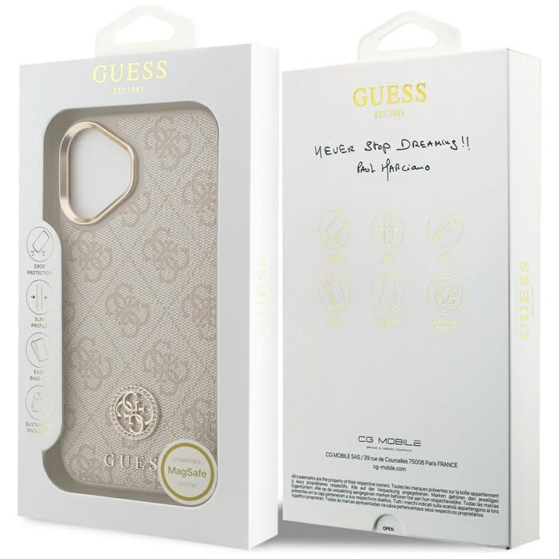 At the bottom of the case is a striking Guess 4G emblem decorated with shimmering crystals, which gives the whole thing a unique shine. The subtle Guess logo harmoniously complements the stylish composition.