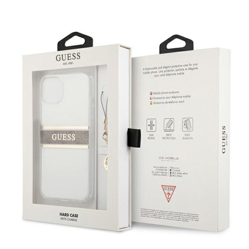 Guess 4G Stripe Brown Charm - Case for iPhone 13 mini (Transparent)