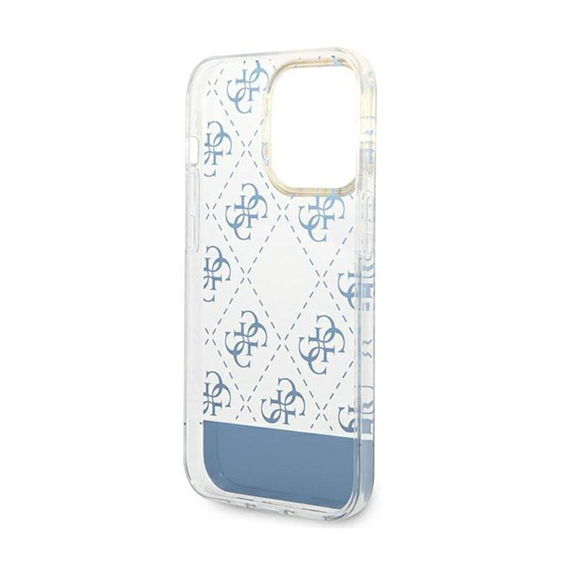 Guess 4G Stripe Script Logo Electroplated Pattern – Etui iPhone 14 Pro Max (niebieski)