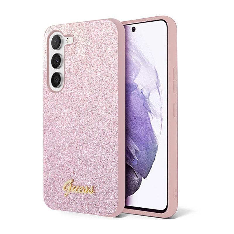 Guess Glitter Flakes Metal Logo Case - Etui Samsung Galaxy S23 (różowy)