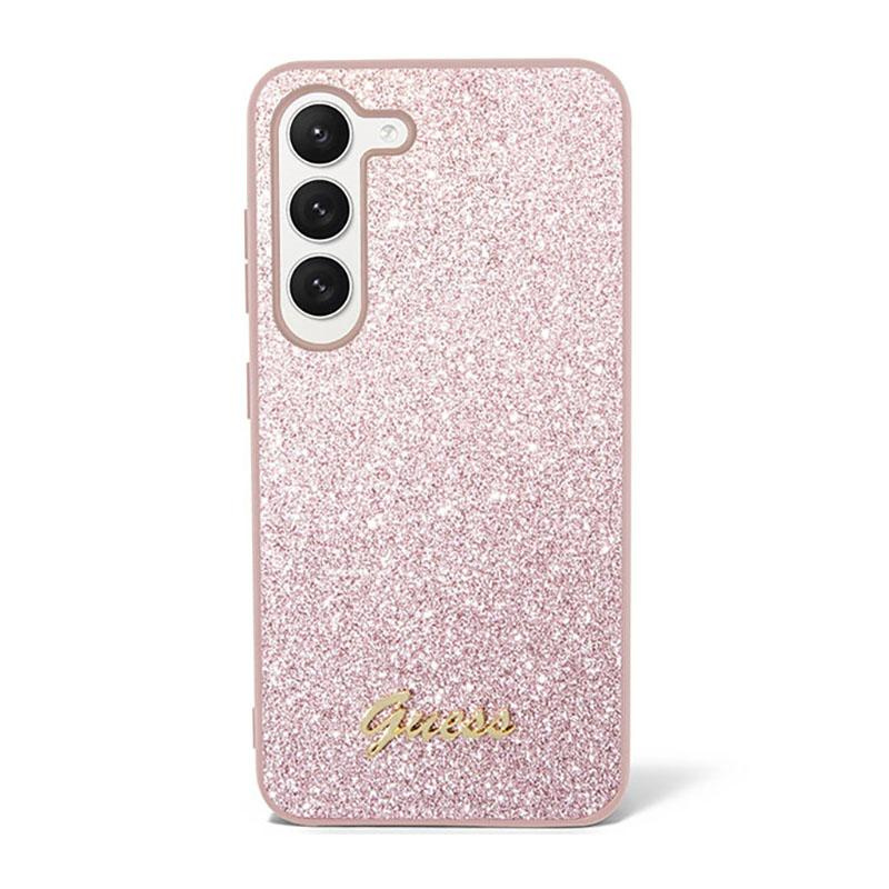 Guess Glitter Flakes Metal Logo Case - Etui Samsung Galaxy S23+ (różowy)