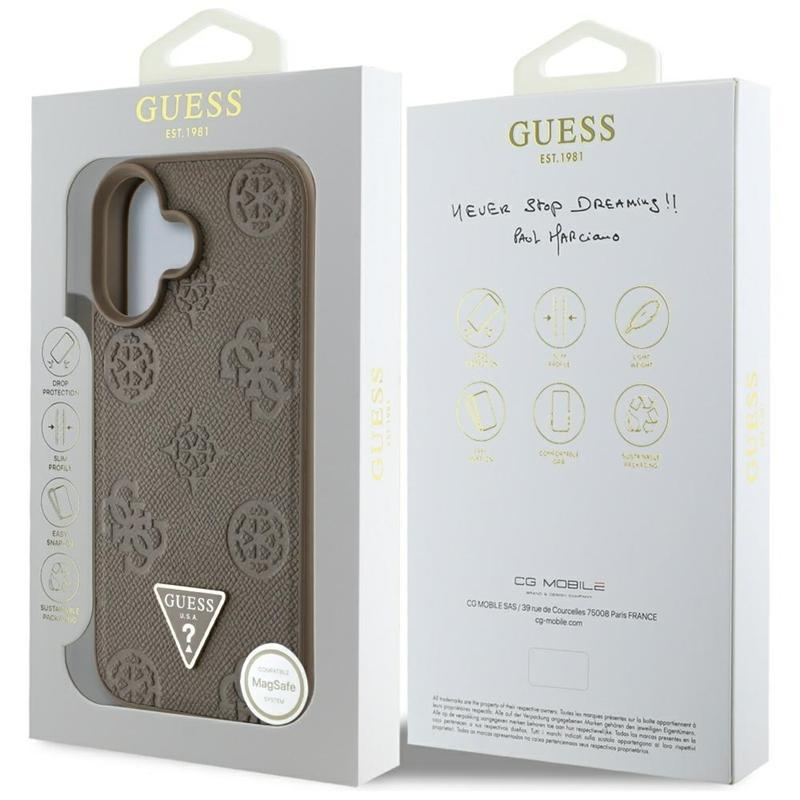 Guess Grained Hot Stamp Peony Triangle Logo MagSafe - Case for iPhone 16 (brown)