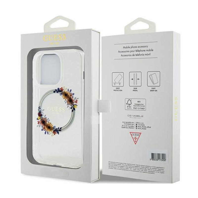 Guess IML Flowers Wreath MagSafe - Case iPhone 15 Pro (Clear)