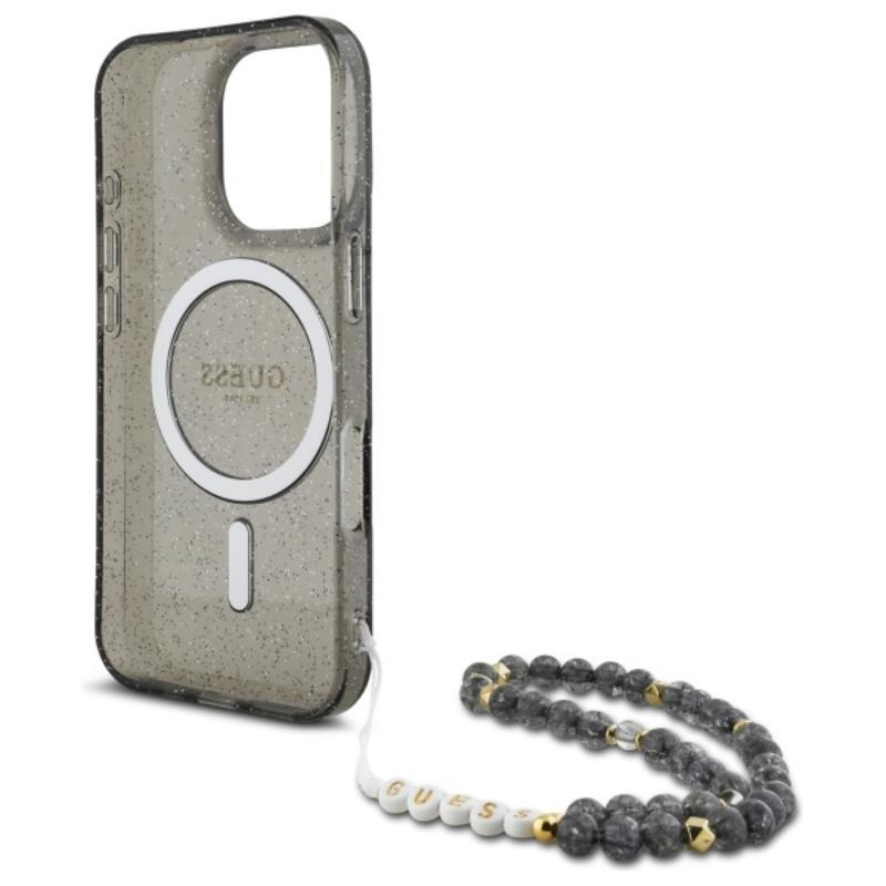 Guess IML Glitter With Pearl Strap MagSafe - Case for iPhone 16 Pro Max (Black)