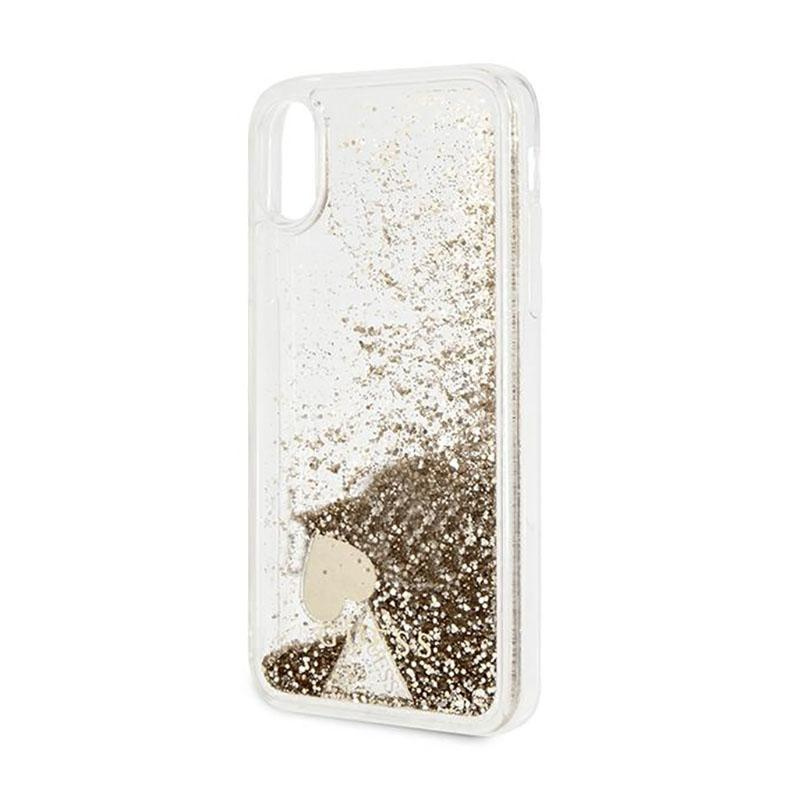 Guess Liquid Glitter Charms - Etui iPhone Xs / X (złoty)