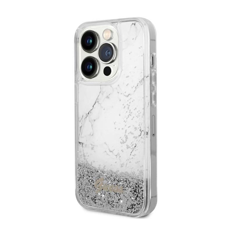 Guess Liquid Glitter Marble - Case for iPhone 14 Pro (White)