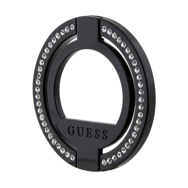 Guess MagSafe Ring Stand Rhinestone - Magnetic finger holder for phone with stand function (Black)