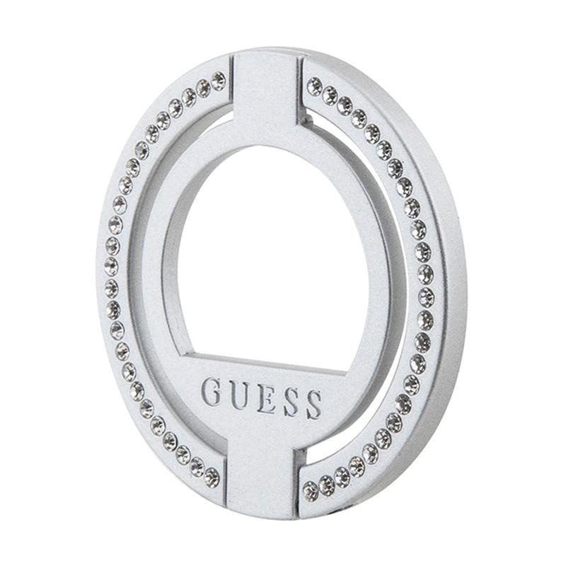 Guess MagSafe Ring Stand Rhinestone - Magnetic finger holder for phone with stand function (Silver)