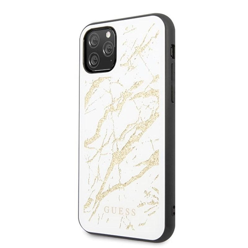 Guess Marble Glass Gold Glitter - Etui iPhone 11 Pro Max (biały)