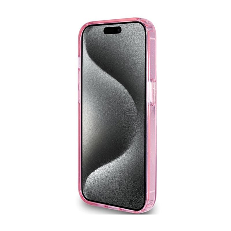 Guess Ring Stand Script Glitter MagSafe - Etui iPhone 15 Pro Max (różowy)