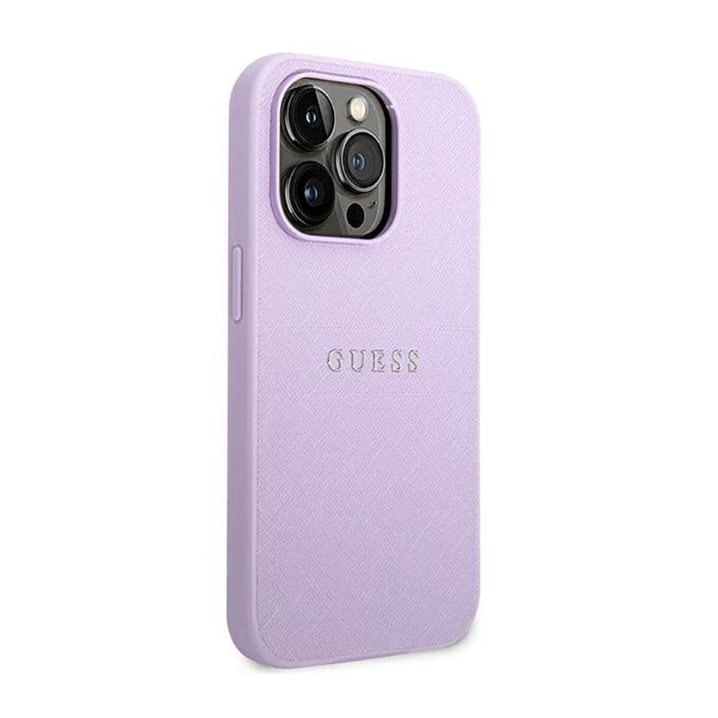 Guess Saffiano Metal Logo Stripes - Case for iPhone 14 Pro (Lilac)