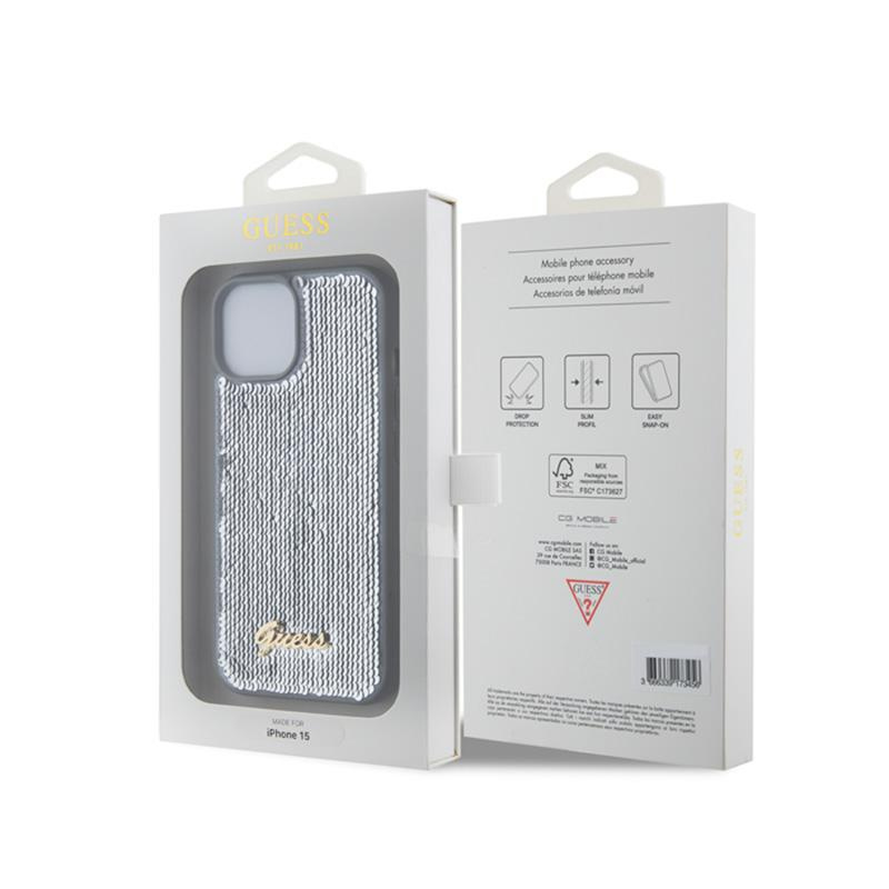 Guess Sequin Script Metal - Case for iPhone 15 (Silver)