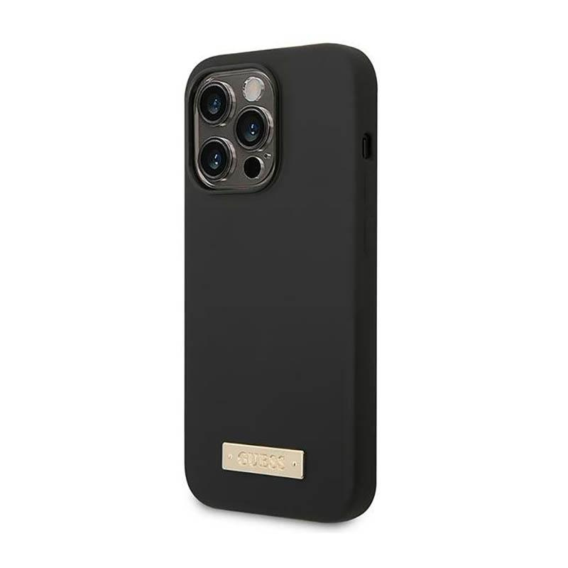 Guess Silicone Logo Plate MagSafe - Case for iPhone 14 Pro (Black)