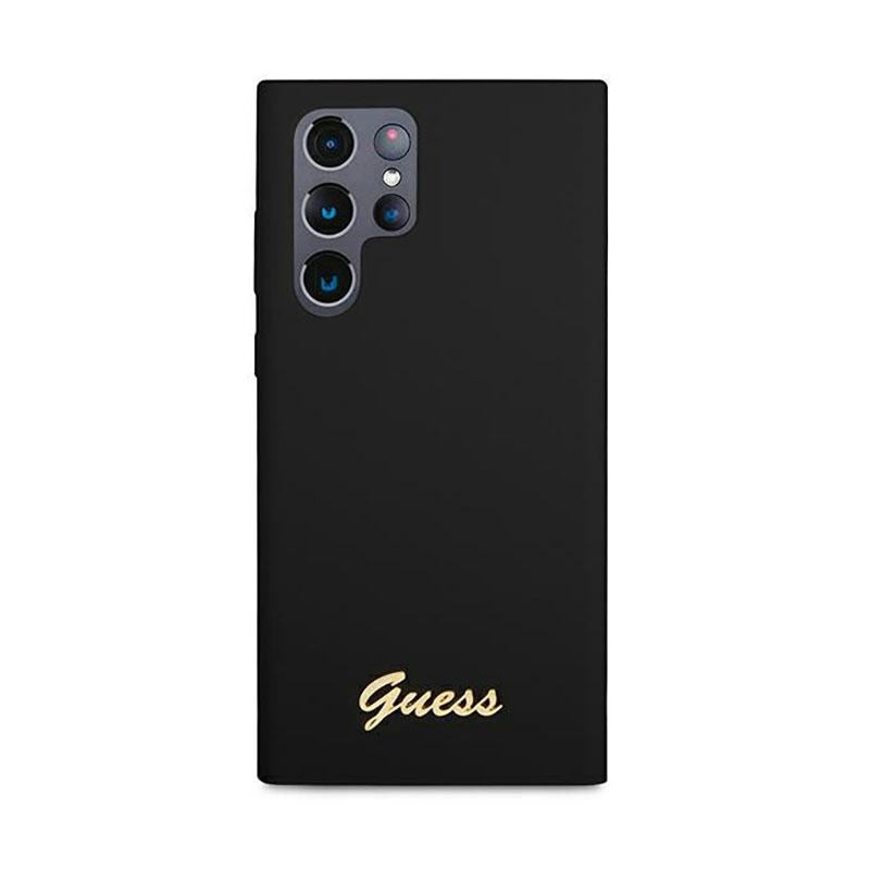 Guess Silicone Script Metal Logo - Etui Samsung Galaxy S22 Ultra (czarny)