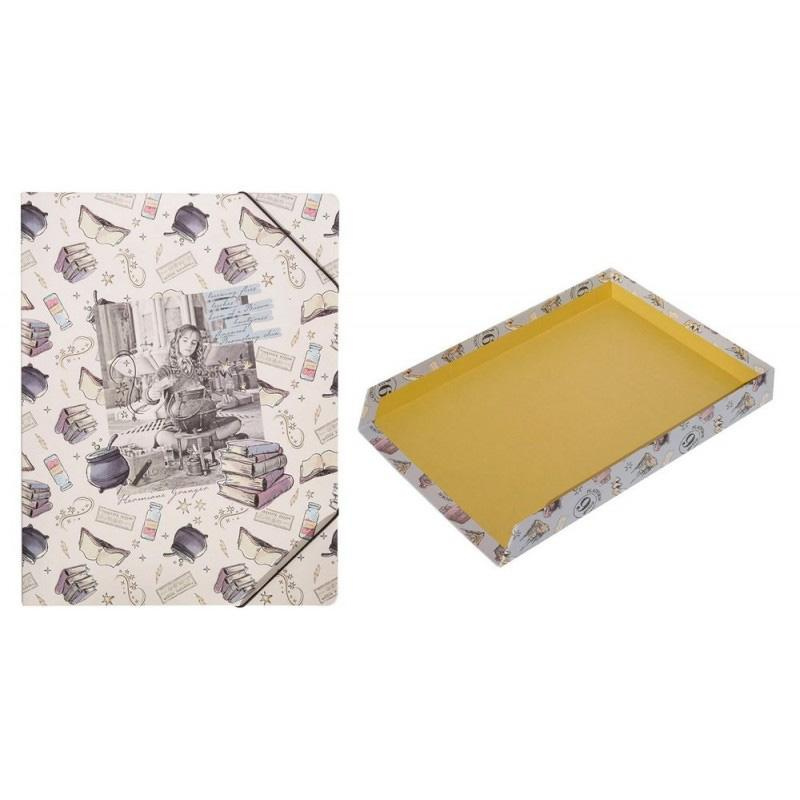 The set includes everything you need to keep your magical desk tidy: Two containers for pens, crayons, markers, a large vertical organizer for documents, a document tray, and a folder with an elastic band.
