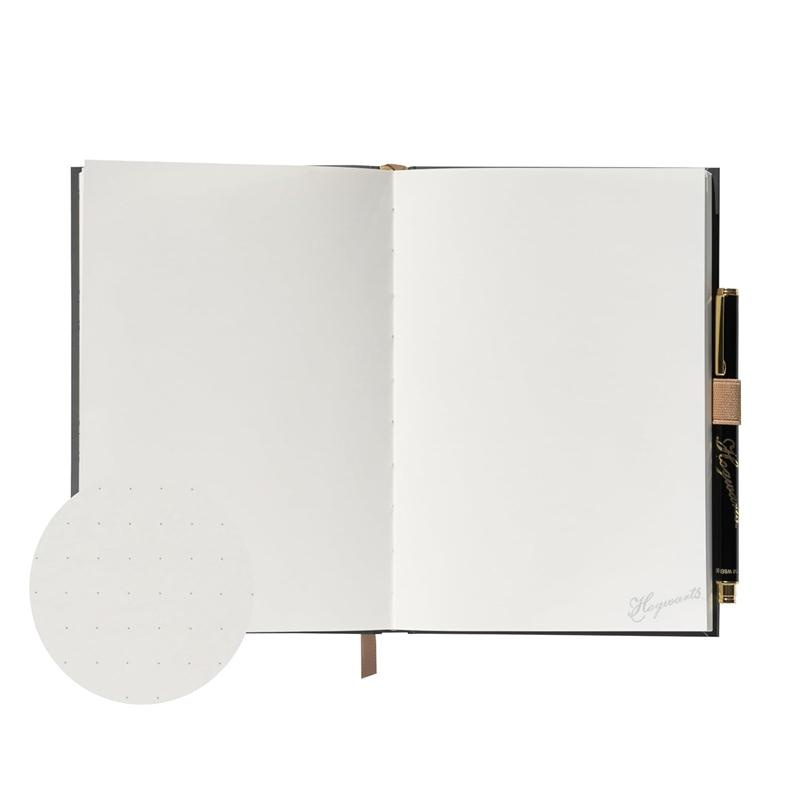 Additional practical features, such as an elastic band, ribbon bookmark, and an internal pocket for small notes or documents, make this notebook not only beautiful but also incredibly functional. The included Hogwarts themed pen perfectly complements the set.