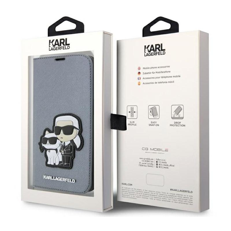 Karl Lagerfeld Booktype NFT Saffiano Karl & Choupette - Case for iPhone 14 Pro Max (Silver)