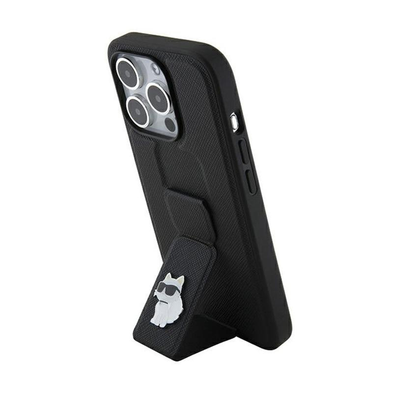 Karl Lagerfeld Gripstand Saffiano Choupette Pins - iPhone 14 Pro Case (black)