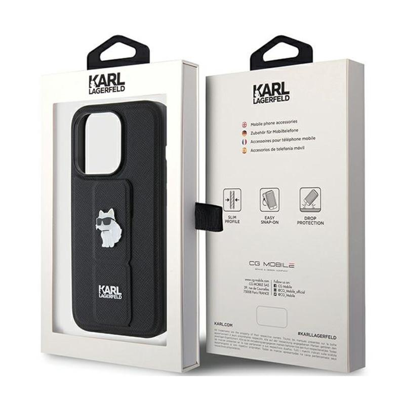 Karl Lagerfeld Gripstand Saffiano Choupette Pins - iPhone 15 Pro Case (black)