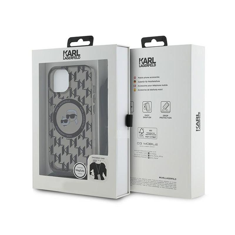 Karl Lagerfeld IML Crossbody Monogram Karl & Choupette Head MagSafe - Case for iPhone 15 / 14 / 13 (Black)
