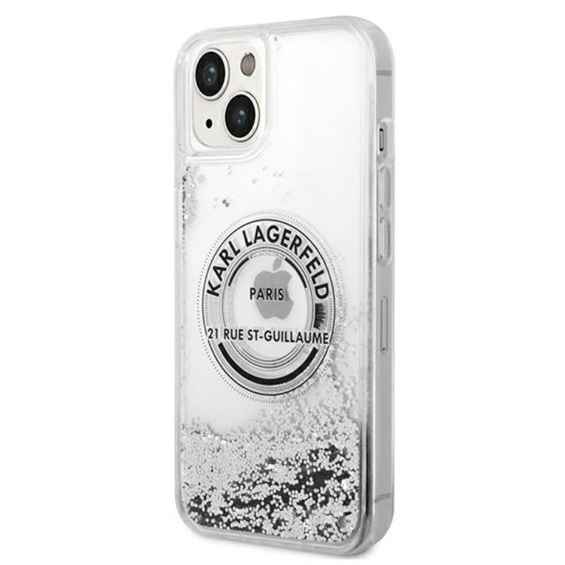 Karl Lagerfeld Liquid Glitter Round RSG Logo Case – Etui iPhone 14 (srebrny)