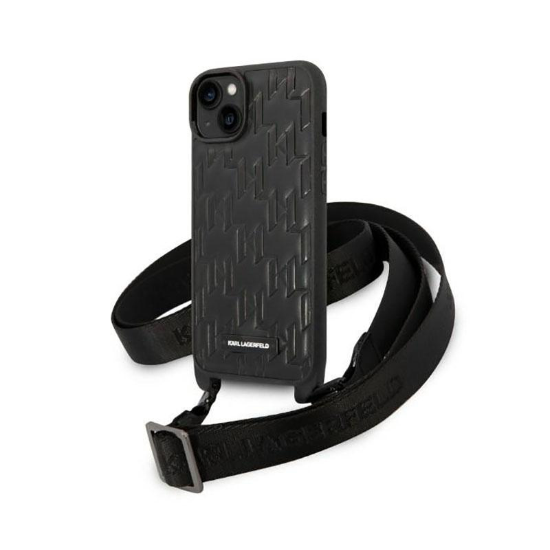 Karl Lagerfeld Monogram Plaque Logo Strap - Case for iPhone 14 Plus (Black)
