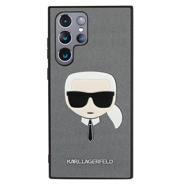 Karl Lagerfeld Saffiano Ikonik Karl`s Head - Etui Samsung Galaxy S22 Ultra (srebrny)