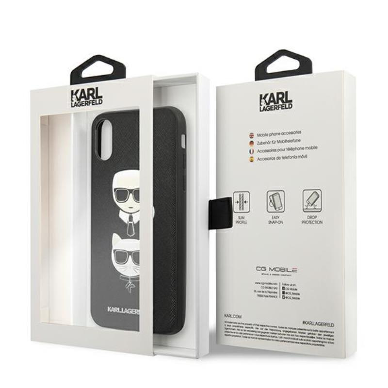 Karl Lagerfeld Saffiano Karl & Choupette Heads - Case for iPhone Xs / X (Black)