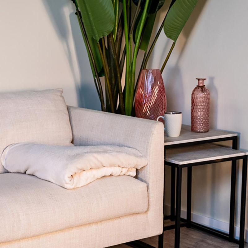 Przyjemny w dotyku koc wykonany z miękkiej tkaniny.