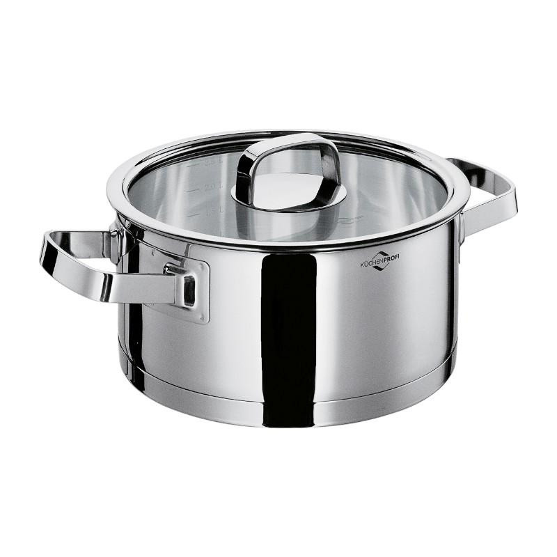 Küchenprofi San Remo - Low Stainless Steel Pot with Glass Lid 2.5 l, Diameter 20 cm