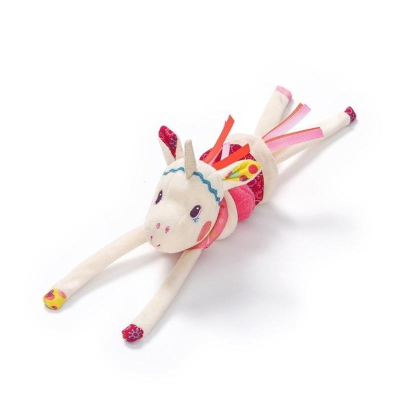 - Grzechotka na rękę Jednorożec Louise belgijskiej marki Lilliputiens to niebanalna aktywizująca zabawka dla niemowląt. Ma postać miękkiej, pokryta futerkiem, szeleszczącej, zapinanej na rzep bransoletki z grzechoczącą główką ślicznego Jednorożca Louisa ze