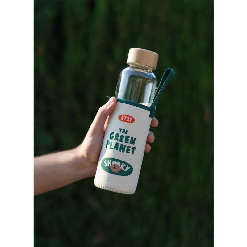- Szklana butelka wielokrotnego użytku z motywem Line Friends BT21 Shooky o pojemności 500 ml.