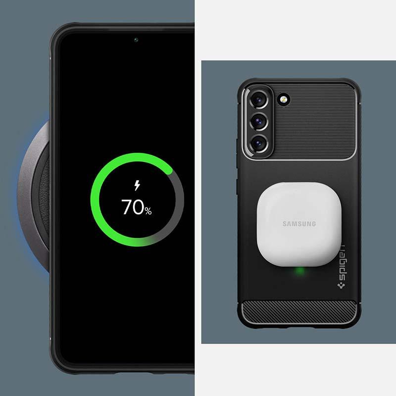 - Spigen Rugged Armor to etui wykonane z trwałego i odpornego na wstrząsy elastycznego TPU, które zwiększa przyczepność i komfort użytkowania. Nie pogrubia znacząco telefonu, zachowując jego oryginalny kształt, jednocześnie zapewniając mu ochronę przed zary