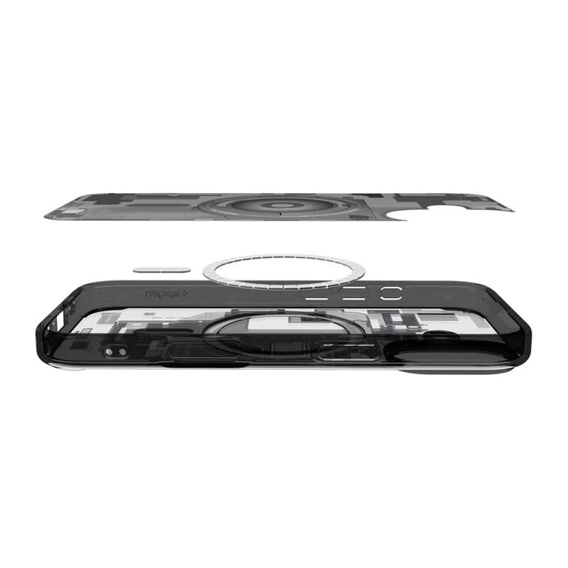 The Spigen Ultra Hybrid MagSafe is a case whose frames are made of durable and shock-resistant flexible TPU for increased grip and comfort, and its back panel uses durable polycarbonate. The case is lightweight and easy to install, and its slightly protruding edges protect the camera and screen from scratches on flat surfaces.