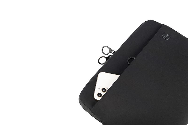 The neoprene construction, with its 4 mm thickness, also offers increased impact protection while the velvety interior prevents the outer case of the MacBook Pro 14" from being scratched. Sleeve is equipped with a spacious front pocket for accessories with zipper.