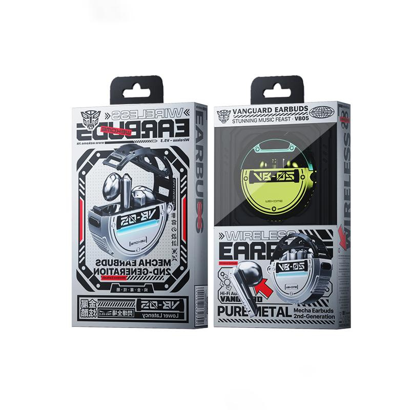 - Bezprzewodowe słuchawki dokanałowe WEKOME VB05 True Wireless z podświetlanym etui ładującym Mecha. Słuchawki wykorzystują nową wersję technologii bezprzewodowej Bluetooth 5.3, która zmniejsza opóźnienia, zakłócenia i poprawia żywotność baterii. Druga gene