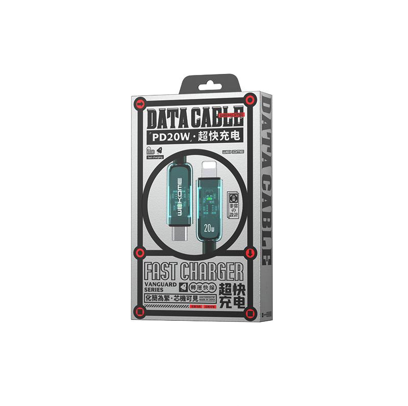The WEKOME WDC-181 Vanguard Series charging and data cable is 100 cm long and features a USB-C to Lightning connector.
