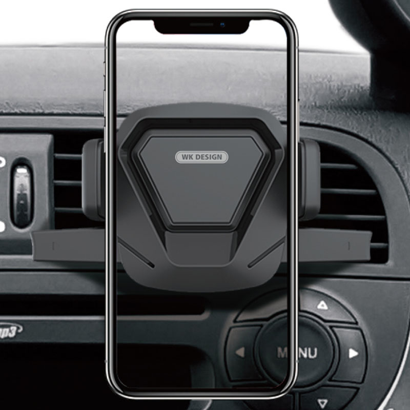 WEKOME WP-U82 King Kong Series universal car holder that mounts to your car's air vents. An ideal solution for those looking for a durable and stable phone holder for any journey. The holder is compatible with phones from 4.7 to 6.5 inches. The 360-degree swivel head means that you can use your smartphone at the most suitable angle, both horizontally and vertically. The gadget does not require any cumbersome adjustment to the phone. Simply place your device down on it and the jaws close automatically. Product features: - Compatible with phones from 4.7 to 6.5 inches - Material: PC + metal + silicone - Movable head 360 - Mounted to the ventilation grille - Universal - Functional and stable - Product dimensions: 195x82x60mm - Weight: 200g