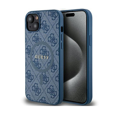 Guess 4G Collection Leather Metal Logo MagSafe - Etui iPhone 15 Plus / 14 Plus (niebieski)