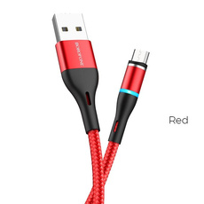 Borofone - Kabel USB-A do microUSB z magnetyczną końcówką i podświetleniem, 1,2 m (Czerwony)