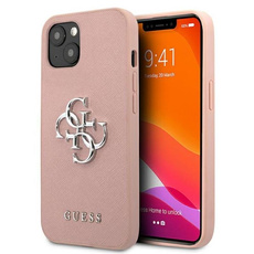Guess Saffiano 4G Big Silver Logo - Etui iPhone 13 mini (różowy)
